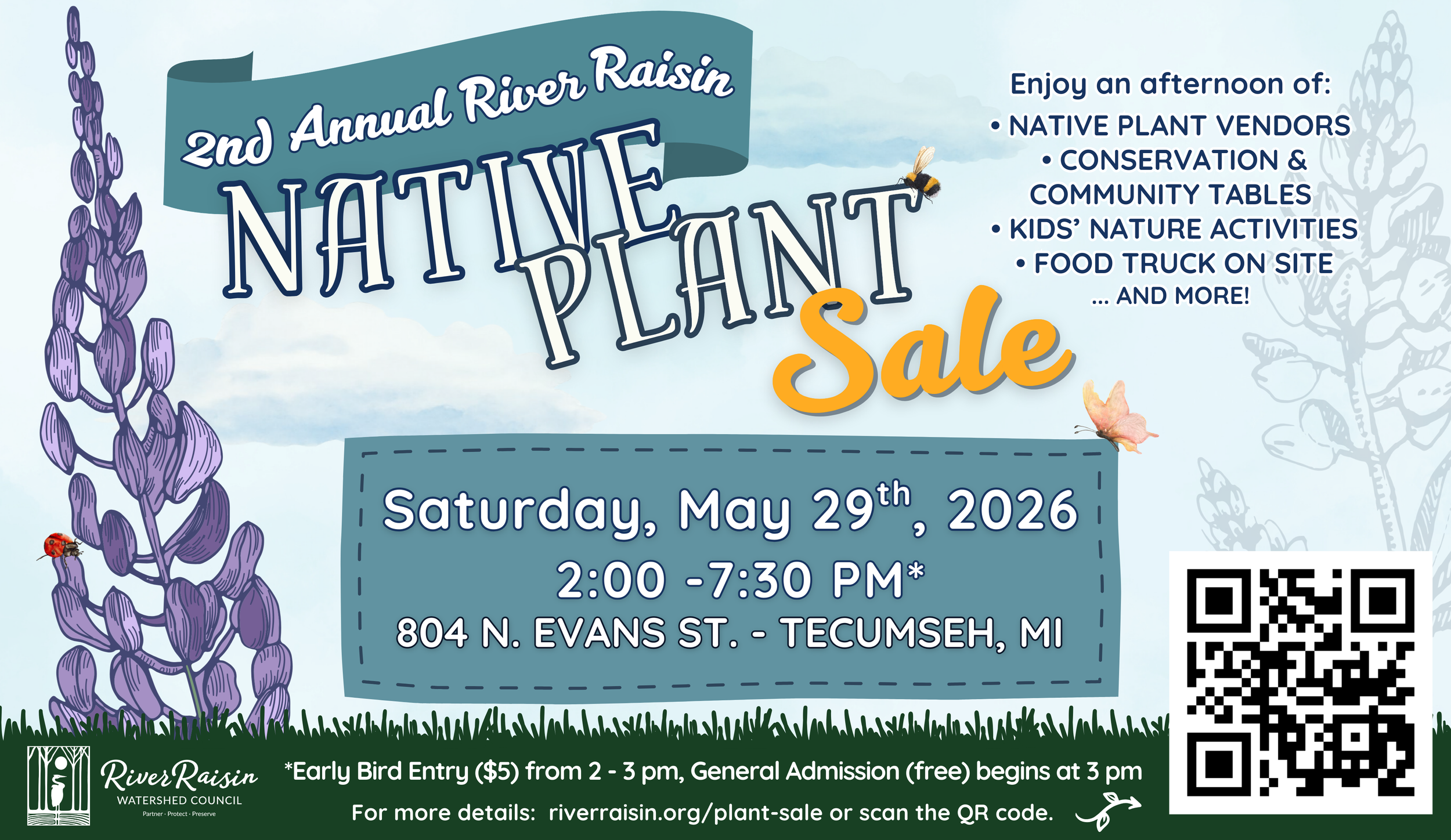 Sat, May 30th - River Raisin Watershed Council, Tecumseh: 2PM - 7:30PM